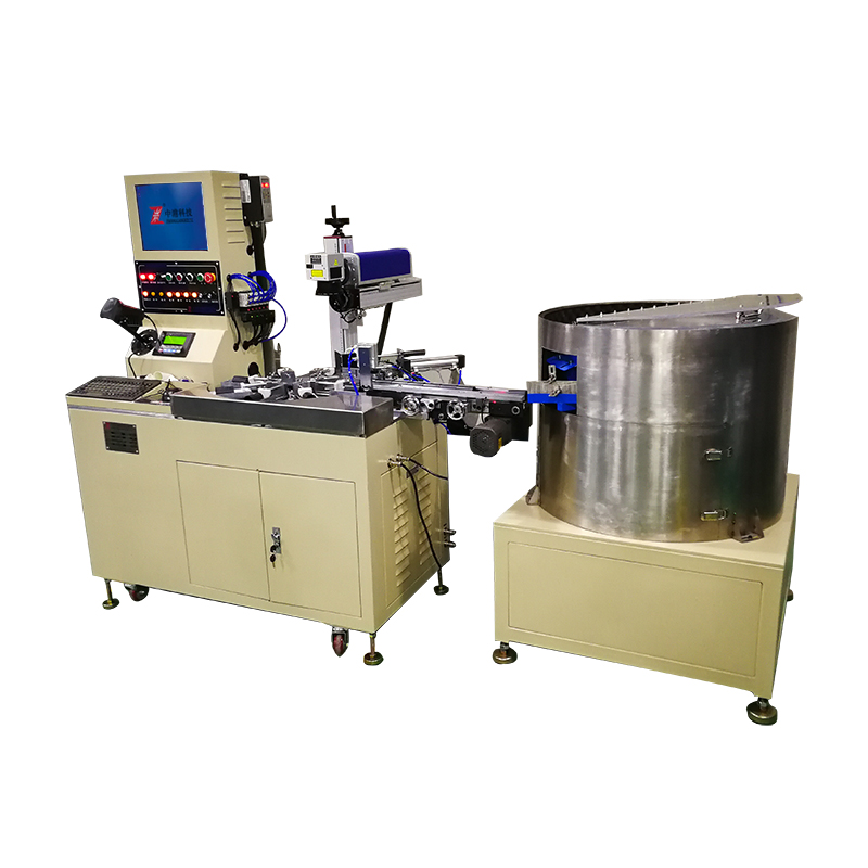 Operation process: The vibrating plate is automatically loaded, and it enters the V-slot of the turntable via the conveyor belt and is fixed, and then rotates to the laser marking station through the 8-station divider for label printing, and then goes to the unloading station to automatically discharge