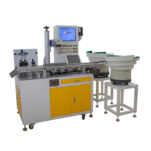 Operation process: The workpieces are automatically arranged in order by the vibrating plate, and are fed to the laser marking position through the conveyor belt for shaping and positioning. After positioning, the system automatically triggers the laser marking and transports it to the material frame after the marking.